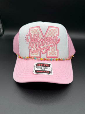Distressed Patch Hat: PINK w/ Ribbon (Black)