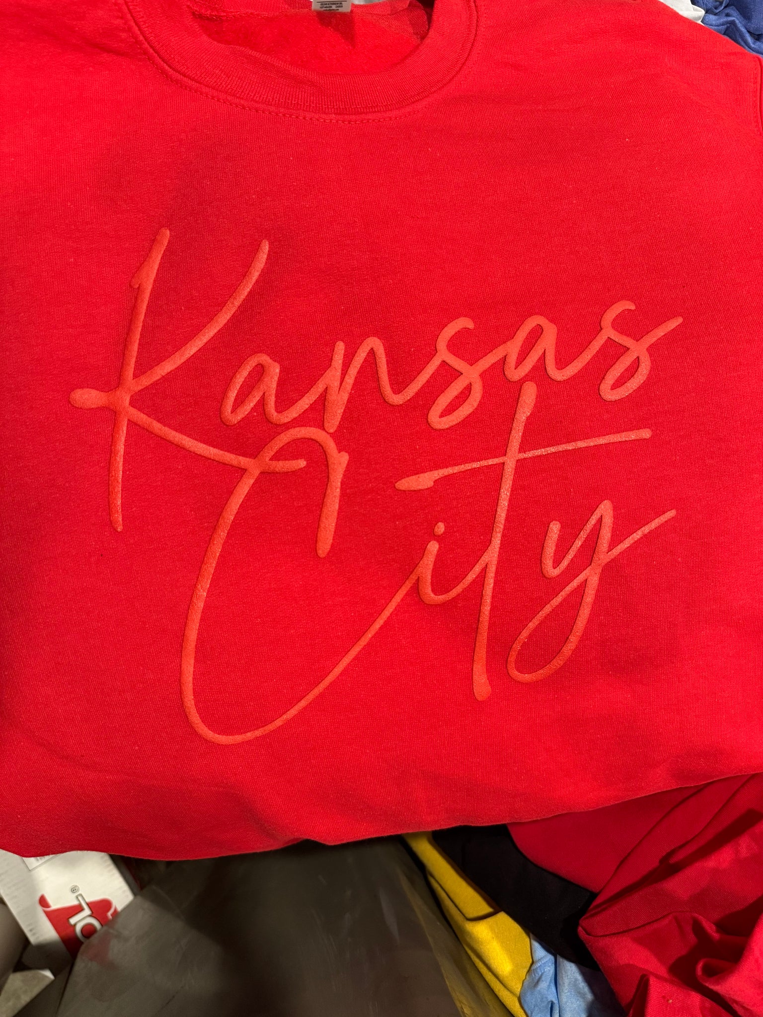 Show your support for the Kansas City Chiefs with our Kansas City Script crewneck! Featuring a bold screen print design and a puffed texture, this sweatshirt is perfect for game day or everyday wear. Show off your team pride and stay comfortable at the same time.